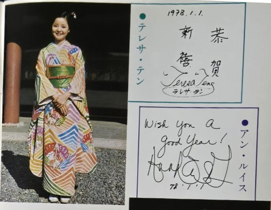 ◇テレサの好きな日本料理……インタビューにあるとおり、日本に来た当時は茶碗蒸しと焼き魚(サケ)ばかり食べていたが、さらに牛肉のしゃぶしゃぶを食べてから大のしゃぶしゃぶ狂いになってしまった。とにかく台湾に帰っても「しゃぶしゃぶたべられないことだけが本当に残念ですね」というほどなのだから相当な好物なのだ。