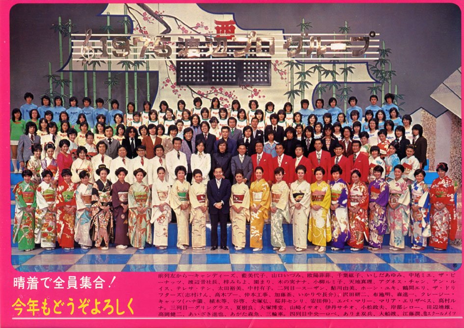 ☆1975年11月 フジテレビ「新春スターかくし芸大会」終了後に、渡辺プロ1976年新春集合写真を撮影。