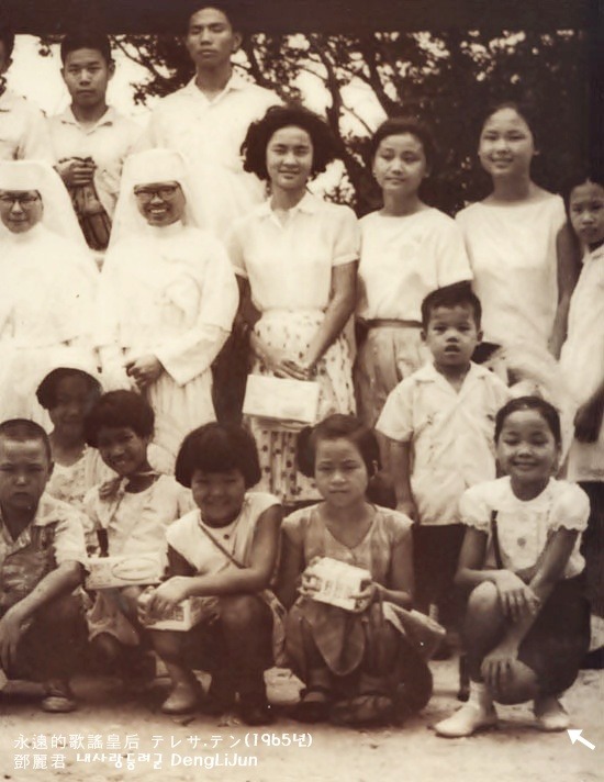 鄧麗君が12歳の時、友人と修道女と一緒に撮った写真で、前列の右側に座って微笑んでいるが、マグネシウムフラッシュの閃光が炸裂した瞬間だったため、まるで目を閉じているように見える。これが写真を撮るのが好きな鄧麗君をしばらくの間、とても不機嫌にさせた。