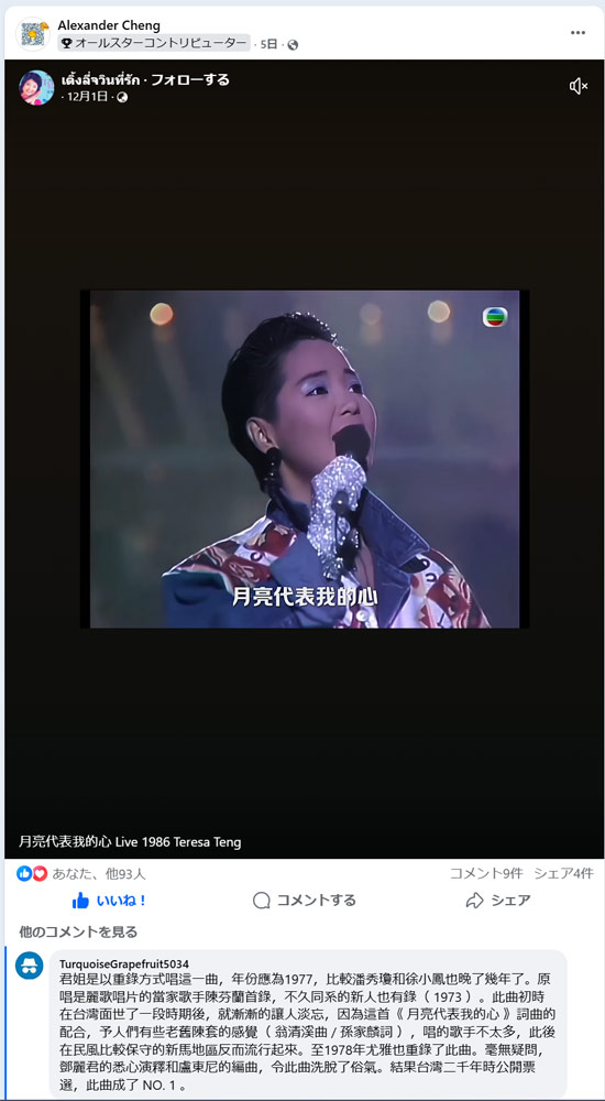 内容の正確さについて、その確認はできないものの、陳芬蘭が最初に歌い、数年後にテレサ・テンが歌ってヒットさせるまでの経過が書かれており、興味深いものです。